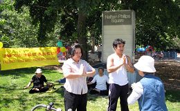 珍妮对她说:“炼法轮功对身心健康都是有好处的,我今年七十二岁了,我是修炼了法轮功才这么精神的。”这位女士惊奇的说:“你已七十二岁了?你看上去象四十多岁的人呢。”然后她把法轮功的网站地址和炼功点的信息记下,临走时说:“这功法这么好,我一定要炼下去。”