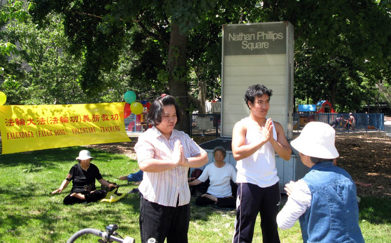 【明慧网二零零七年六月十二日】(明慧记者章韵多伦多报道)二零零七年六月九日下午二时至十时,加拿大多伦多菲律宾中心在多伦多市政厅广场(Nathan Phillips Square)举行了菲律宾独立日庆祝活动。二十多家当地菲律宾团体到场。由法轮功学员组成的多伦多莲花艺术团及天国乐团应邀现场表演,受到主办机构赞扬及观众欢迎。