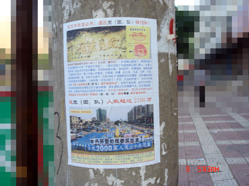 山东省即墨市某地的退党宣传画和标语,于二零零七年六月九日清晨拍摄。
