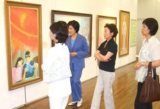 美展期间艺术馆二楼召开了罗马尼亚音乐团的演奏会和三育大学教授作曲发表会。参加这次演奏的大多数团员观赏了“真善忍”国际美术展。通过画展和解说,他们了解到法轮功是什么,中共怎样残酷的迫害法轮功,以及法轮功修炼者面对迫害体现出坚韧不屈的精神面貌。特别是罗马尼亚来的团员们表现出对法轮功人权遭践踏的关注,以及对中共邪恶本质的新认识。他们在两天时间里每天都来观赏作品。