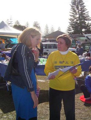 【明慧网二零零七年六月二十八日】二零零七年六月二十四日,澳洲扬巴地区(Yamba)每月一次的社区集市热闹非凡,人来人往。法轮功学员在集市上也搭起了摊位向人们介绍法轮大法和发生在中国的迫害真相。