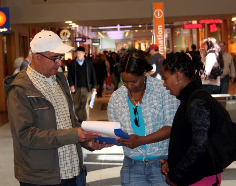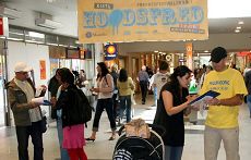 这两天的天气格外的好,人群中年青人显的特别多,他们大多都是三五个人结伴而来。当听到学员讲述在中国正发生着活摘法轮功学员器官的残暴行径时,人们表示出极大的愤慨,主动拿起笔来签上了自己的名字和地址。一位年青人对他的朋友说,“有你代表我签就行了,我就不用再签了。”他的朋友立刻严肃的对他说,“不行!这是多么邪恶的事啊!你一定要签,这需要我们每个人,大家都要来制止它们!不能让这种事情发生在这个地球上!”年青人连连的点头说:“对!对!”马上签上了自己的名字。