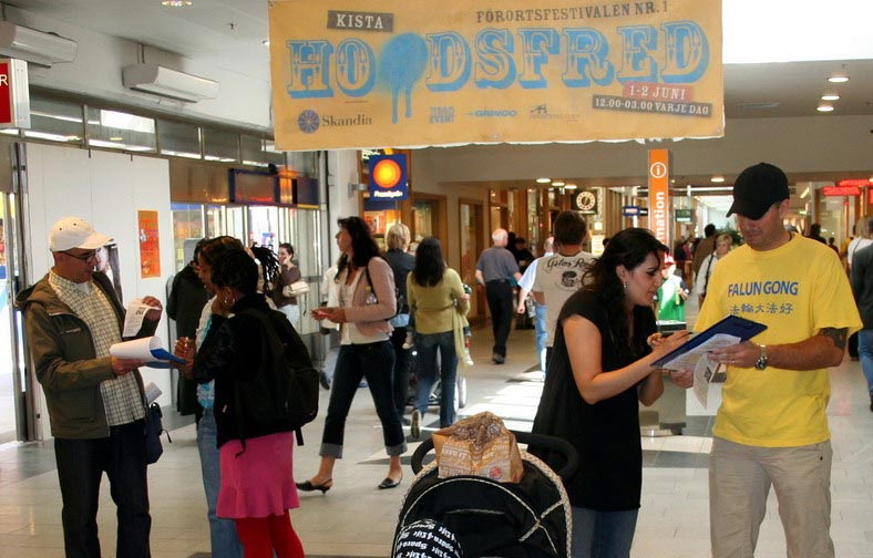 二零零七年六月一至二日,音乐艺术文化节在斯德哥尔摩北部的KISTA举办,喜爱夏天的瑞典人用这种方式迎接着夏日的到来。法轮功学员借这个机会,在地铁里、地铁的出入口、中心广场等处,向广大民众面对面的讲真相,揭露中共活摘法轮功学员器官的残暴行径并征集反迫害的签名。征集的签名将交给瑞典政府,敦促瑞典政府在几天后胡锦涛来瑞典访问时谈法轮功人权在中国遭践踏的问题。
