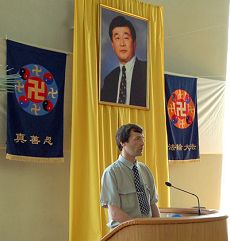 ![]() 法轮功学员在法会上交流自己修炼和证实法的体会 |