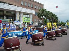 【明慧网二零零七年六月五日】为声援二千二百万勇士退出中共,二零零七年六月三日,台湾东部的宜兰、花莲、台东三县民众于花莲市联合举办车队游行活动。当日上午,声援退出中共的车队由宜兰、台东两地出发,至花莲与当地车队会合,上午十一时于花莲县议会广场举行新闻发布会,十一时五十分车队出发,绕行花莲市中正路、中山路、中华路、火车站、德兴运动场等菁华地段。