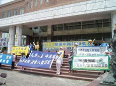 ![]() 在中使馆前抗议中共对法轮功的迫害 |