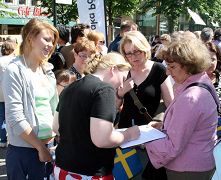 由于签名将在六月七日交给瑞典政府,活动一直持续到晚上八点才结束。仅在国王花园处获得的签名就有上千个。看到许多瑞典民众如此支持正义,法轮功学员感到由衷的欣慰。