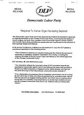 「民主工党年会指责联邦政府,对于中共官方大规模、有系统的暴虐和残忍、包括对中共官方机构持续强行摘取器官暴行的反应,是极为不恰当的。」