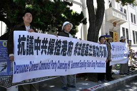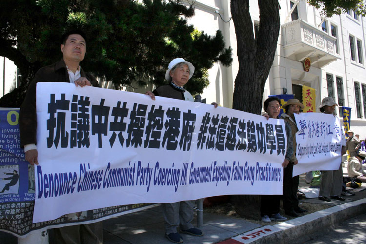 ![]() 旧金山法轮功学员抗议中共胁迫香港非法遣返法轮功学员 |