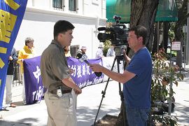 甄文彪说,香港法轮功学员起诉迫害法轮功的元凶,中共很害怕,在香港动员了十个部门企图阻止法轮功学员入境。这已成为香港历史上最大规模的遣返案。这一严重事件在全世界面前彻底暴露了中共在香港肆意践踏人权、剥夺自由的丑行。所以我们今天来中共领事馆,抗议中共胁迫香港遣返法轮功学员。