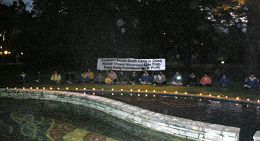 当夜幕渐渐来临时,学员点亮了蜡烛,在花园水池边进行烛光悼念活动,以此追思那些被中共恶党迫害致死的中国大陆法轮功学员。