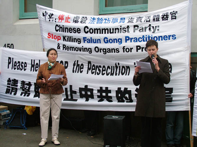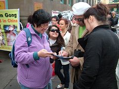 集会过程中,很多过往民众驻足观看、倾听;了解真相后的很多民众签名支持真相调查团(CIPFG)赴大陆调查活摘法轮功学员事件的真相。
