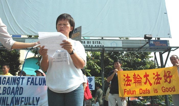 ![]() 法轮功学员抗议中共暴行 |