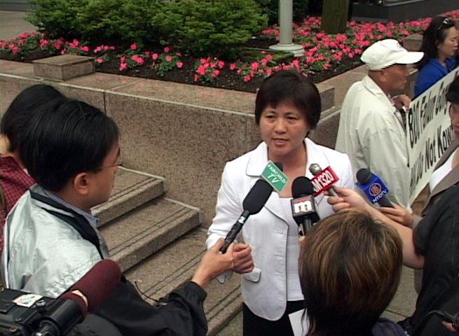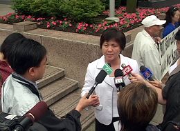 ![]() 法轮功学员陈雪莉在接受媒体采访 |