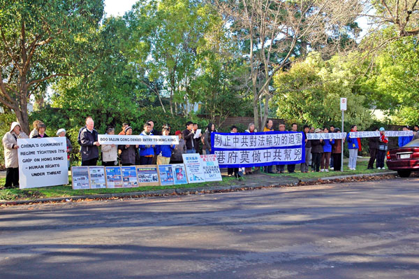 ![]() 墨尔本法轮功学员中领馆前抗议港府暴力遣返 |