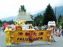 ![]() 参加各种社区和节庆游行是传播法轮大法福音的好机会 |