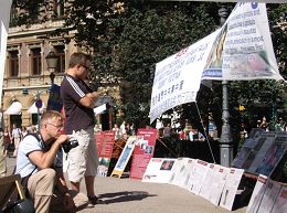 一位芬兰男士看过展板后对学员说,他看过有关毛泽东的书,知道共产党在历史上做了许多坏事。这(迫害法轮功)是它们的新罪证。