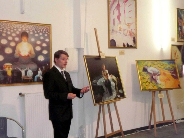 蒂茨还表示,他很遗憾大多数人和艺术家们由于经济利益不去理会人权迫害,他非常感谢有此机会讲话,并祝法轮功学员、画展和协会一切顺利,希望对法轮功的迫害尽快结束。