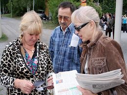 一位来自俄罗斯的中年女士,当她得到一张俄语的法轮功功法简介和真相资料时,她高兴的说:“这真是太好啦!我回去要好好的看看。”