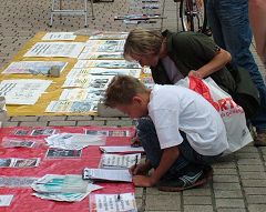 很多观众都愿意带几份传单给自己的朋友。一位绅士风度的老者说,能否给我一份空的签名表格,我让我女儿和其他人签名后给你们邮寄过来。义工给了他一份双面的复印表格,并请他尽量当活传媒让更多人知道法轮功真相。