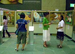 画展也吸引了很多有缘人。一位女士说:看到你们传单上的真善忍,就想到肯定是好的,就来了。一位七十多岁的老年妇女,表示想学习法轮大法,第二天就参加了临时的《转法轮》学习会,然后请走了《转法轮》。一位学生在认真听完学员的导览后,当即请走了《转法轮》。