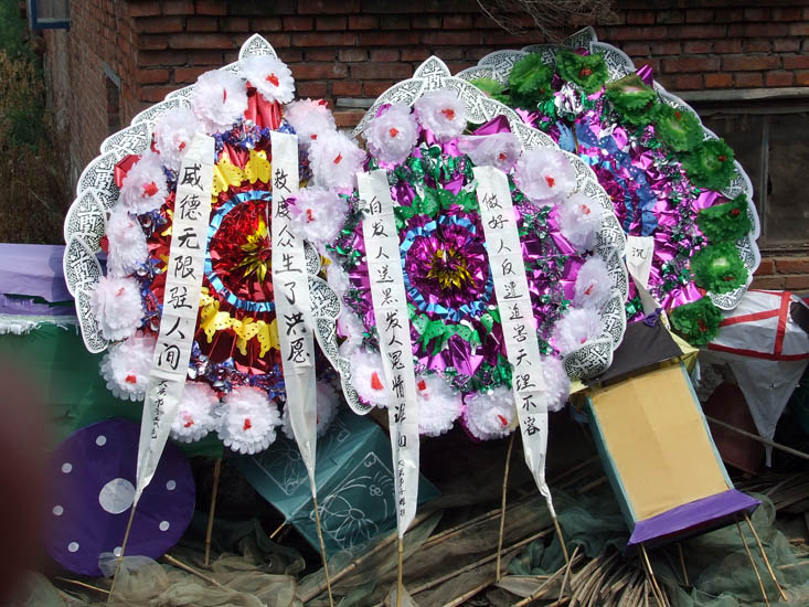 ![]() 诉说冤情的花圈和挽联 |