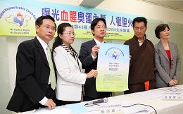 ![]() 梁国雄表示,奥运由染满鲜血的中共政权举办是一种耻辱,中共对法轮功学员的迫害尤甚 | ![]() 林子健则指出支持人权圣火是良知的表现,与中共举办奥运的目的形成强烈的对比 |