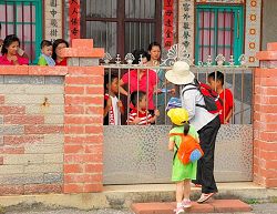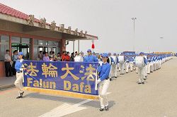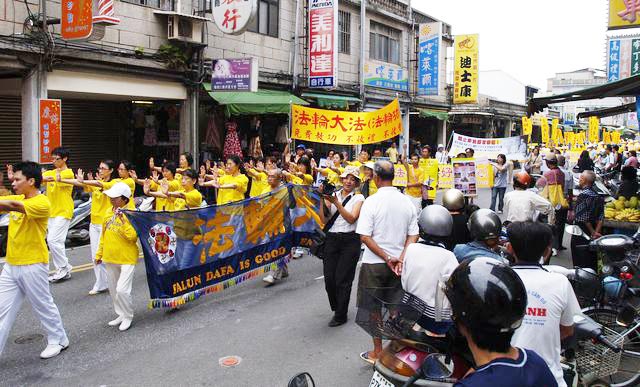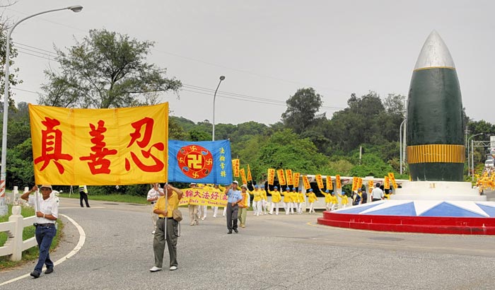 ![]() 法轮功游行队伍经过最具金门文化特色的模范街 |
