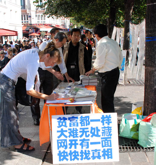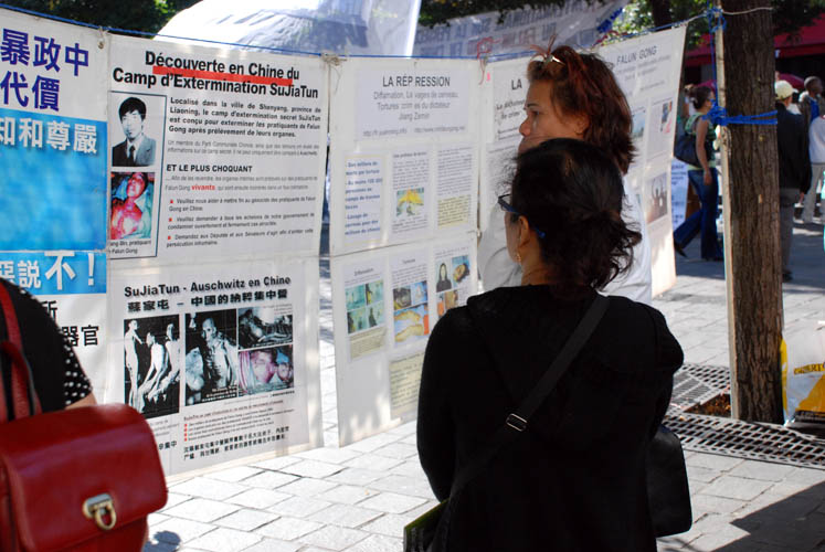 图片报道:法轮功学员巴黎市中心揭中共活摘器官