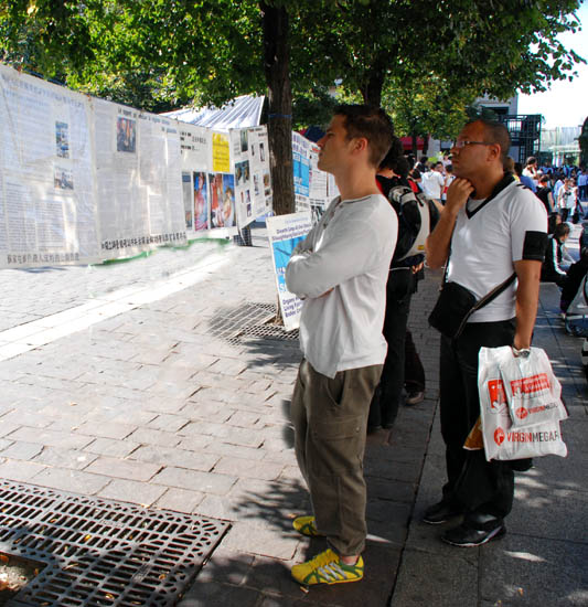 当地民众从真相展板中了解中共迫害法轮功的详情