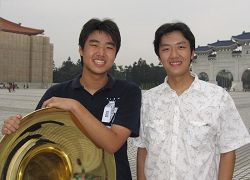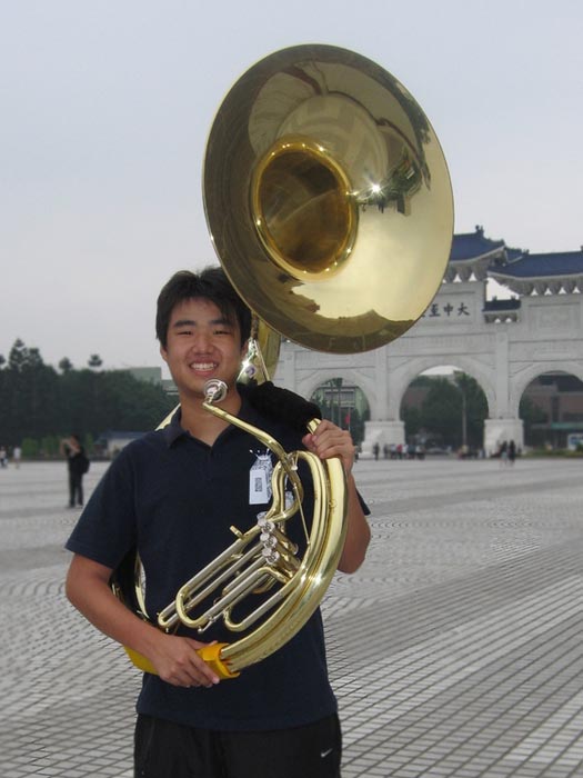 钰豪参与台湾天国乐团的演出(此图是每周六在中正纪念堂团练)
