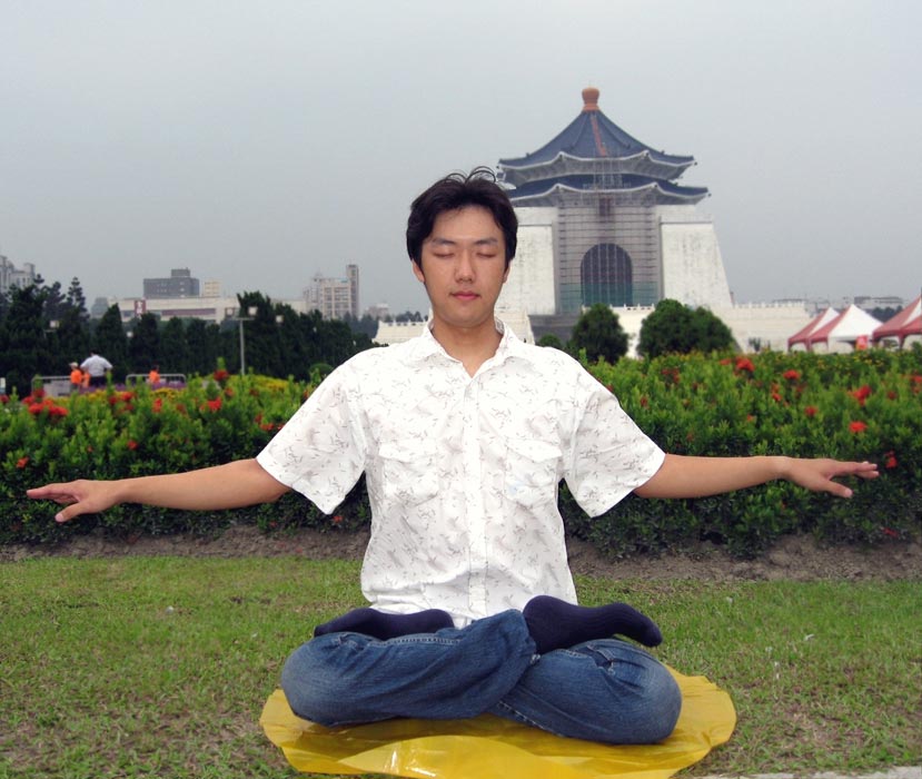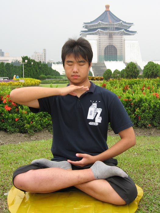 钰麒和弟弟钰豪在中正纪念堂炼第五套功法──神通加持法