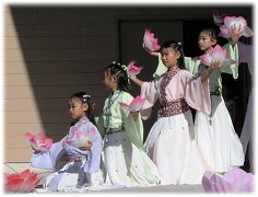 今年,参加美韩中文化日活动的民众第一次看到了由法轮功小弟子表演的节目。小弟子一出现,清新脱俗的服装就很抢眼,一位华人男士脱口问道:“啊,好漂亮,这是什么服装?”随后,小弟子的演出更是展示了遵循“真善忍”的孩子们纯洁、美丽、而又善良的风貌,让观众们为之动容,赢得了热烈的掌声。