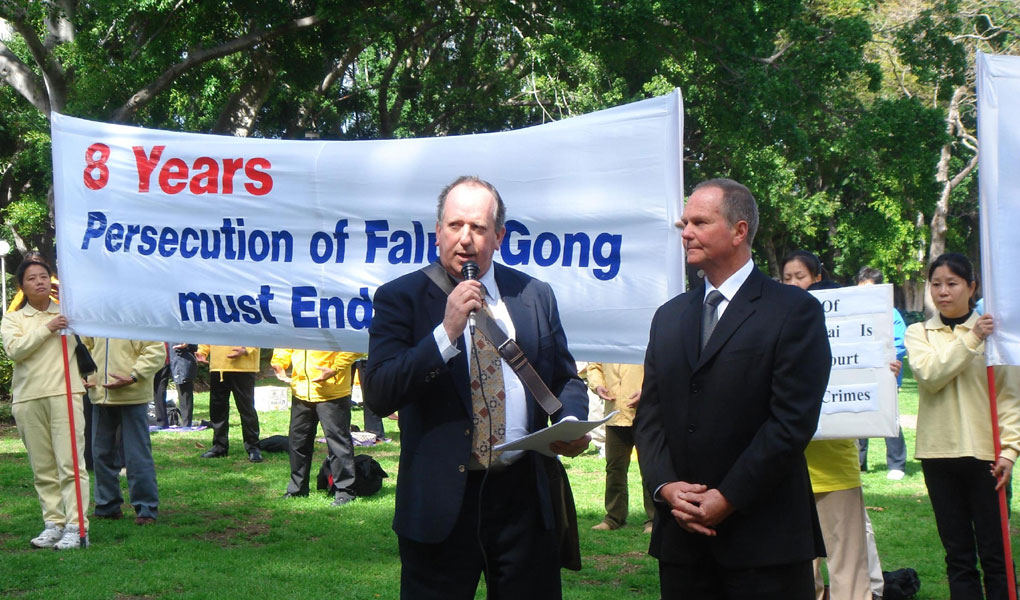 【明慧网二零零七年九月七日】(明慧记者欣宇悉尼报道)二零零七年九月五日,亚太峰会在澳洲召开期间,纽省法轮功学员在海德公园召开新闻发布会,宣布随胡锦涛访澳的中共商务部长薄熙来被澳洲法轮功学员以酷刑罪控告,控告的诉状于九月四日在薄抵达堪培拉的当晚成功递送。