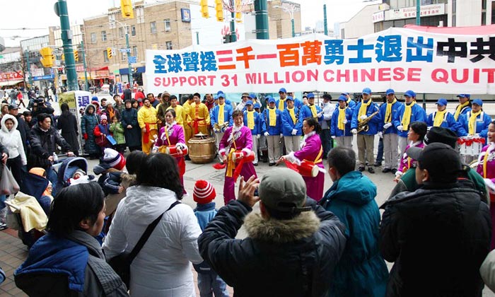 二零零七年十二月三十日,加拿大多伦多中区唐人街拉开五城联手“声援三千万退党大潮,迎接二零零八年全民觉醒”的序幕。声援集会中有近十位来自不同职业的人士踊跃发言,他们的演讲中谈到《九评共产党》这本理性剖析中共邪党本质、唤醒世人良知善根的书;每一个三退数字背后的故事;三退大潮突破三千万给予西方社会带来的反响;三千万勇士退出中共体系,其人数与加拿大总人口相当;从东欧及前苏联共产体系解体的过程及上世纪末共产体系顷刻间彻底解体看今天“天灭中共“的必然。