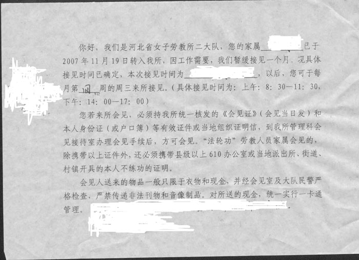 ![]() 河北省女子劳教所二大队迫害法轮功学员的证据 |