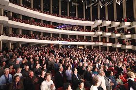 ![]() 一月十四日,演出结束后,全体观众起立鼓掌 |