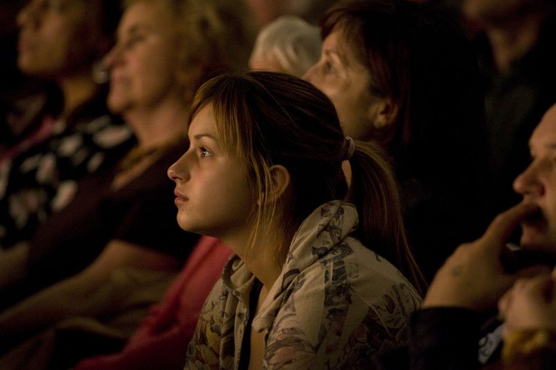 ![]() 演出结束时,观众都站起来鼓掌。 |