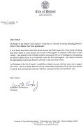 ![]() 底特律市议员艾伯塔•汀丝蕾•塔拉碧 | ![]() 底特律市议员艾伯塔•汀丝蕾•塔拉碧的贺信 |