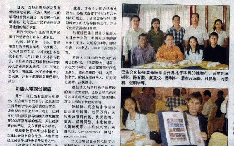报导提到,巴生文化协会会长陈育顺,促请巴生市民全力支持新唐人电视台举办的神韵晚会,因为这是一场世界级的演出。