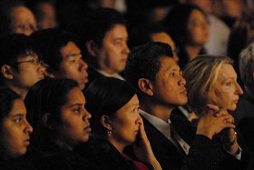 劳伦斯•克林顿(Lawrence Clinton)先生是来自新泽西州Vineland的心理医生,他和太太芭妮(Bonny)看完演出后都兴奋不已。他们认为晚会中的天幕“非常美妙(fabulous)”,舞蹈很漂亮,令人惊奇(beautiful,amazing)。