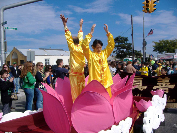 游行结束后,有些观众到花车上拍照留念,有位肯尼迪机场的经理在看了法轮功学员的游行后,特意邀请学员们参加肯尼迪机场举办的节日庆祝活动。