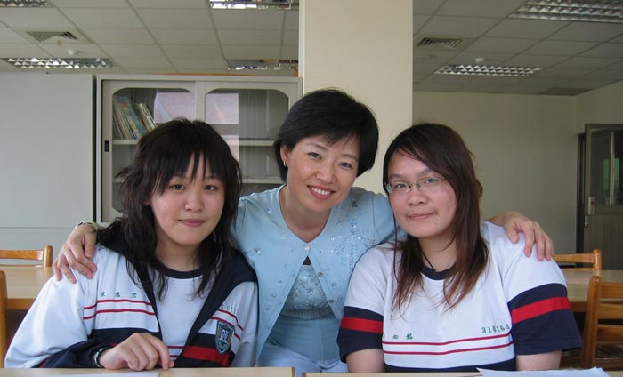 ![]() 师生共修法轮大法:左起为逸君、如铭、和任教历史的吴老师 |
