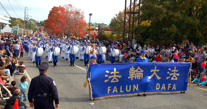 ![]() 应邀压轴罗州“秋之节”大游行的法轮功天国乐团。 |