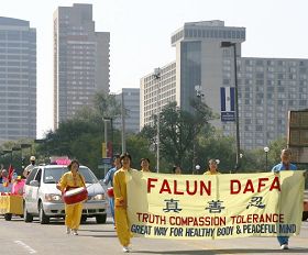 一个小时后,学员们又赶到了另一个城市:欧夫兰德•帕克市,参加了“Overland Park Fall Festival Parade”,将法轮大法的美好带给了更多的民众。