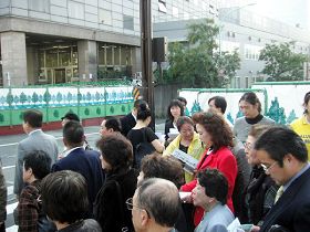 NPO法人日本法轮大法学会鹤园雅章代表在发言中指出,中国正在发生各种严重的人权迫害问题。在这些人权迫害中,对法轮功修炼团体的迫害最为厉害和残酷,希望首相麻生此次中国行,能把法轮功学员要求停止迫害的呼声带到中国。