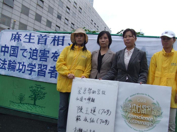 两位老人家在日本的女儿施萍与蒋晓燕以及她们的朋友共同谴责中共当局非法关押她们在上海的母亲。她们10月23日来到了东京永田町的日本国会前,向即将前往北京参加亚欧元首会议的麻生首相呼吁帮助营救自己的母亲。