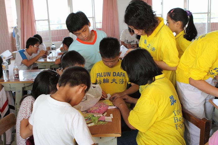 当日课程安排很丰富,包括学法、背法,炼功,摺纸莲花,吹造型气球,学跳迎宾舞、躲避球趣味竞赛、科学游戏等,非常活泼生动,听到孩子们清脆响亮的学法声音,纯真专注的炼功神情,看到每个孩子游戏中满脸笑容,连成人都被这份祥和美好的气息熏染。