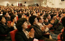 ![]() 十一月一日,二零零八年亚洲法轮大法修炼心得交流会在韩国首尔市立大学隆重召开(图为法会现场)。 |
