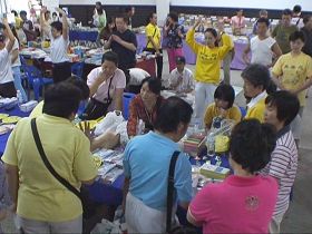 ![]() 法轮功展位,民众了解真相并现场学功 |